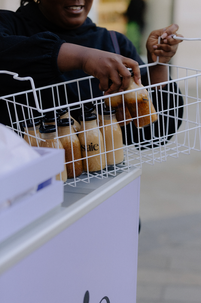A BREAKFAST BIKE POP-UP WAS STATIONED OUTSIDE VOGUE HOUSE IN LONDON FOR THE LAUNCH OF A NEW PRODUCT. THE BIKE WAS CUSTOMISED IN A LILAC PANTONE MATCHING THE PRODUCT PACKAGING AND BRANDED WITH SAIE WRITING. IN THEME WITH THE MORNING BREAKFAST, A FUN NEWSPAPER FEATURING ALL THE LATEST SAIE BRAND INFORMATION WAS HANDED OUT, ALONG WITH BRANDED ICED COFFEE MILK BOTTLES AND PASTRY BAGS TO SERVE FRESH CROISSANTS. THE BIKE WAS ACCOMPANIED BY A MODEL DRESSED IN A CHIC LILAC UNIFORM REMINISCENT OF AN OLD SCHOOL BUTLER.